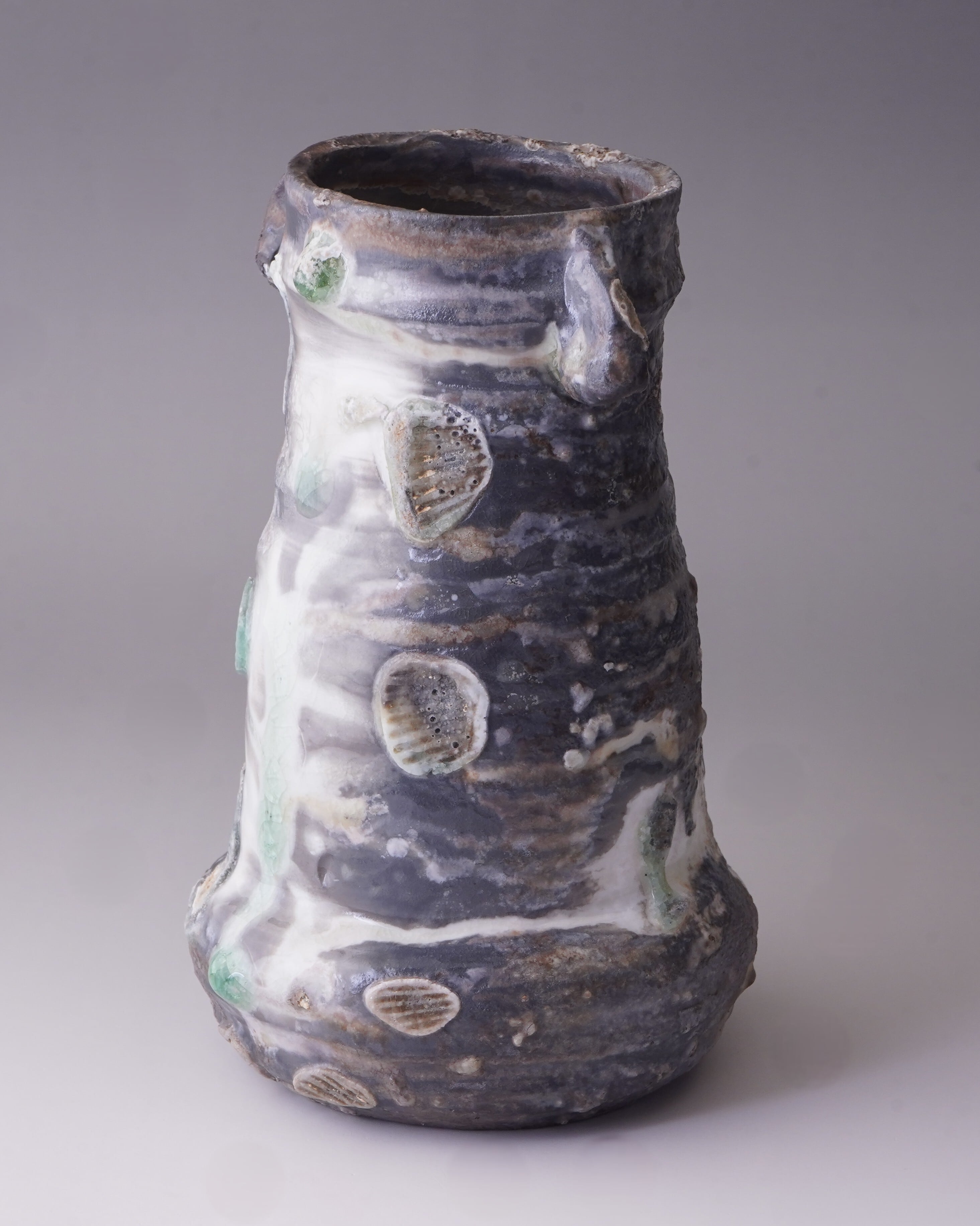 #1【伊賀磁器 耳付花入】(木箱後日)『須釜優子 作陶展』より