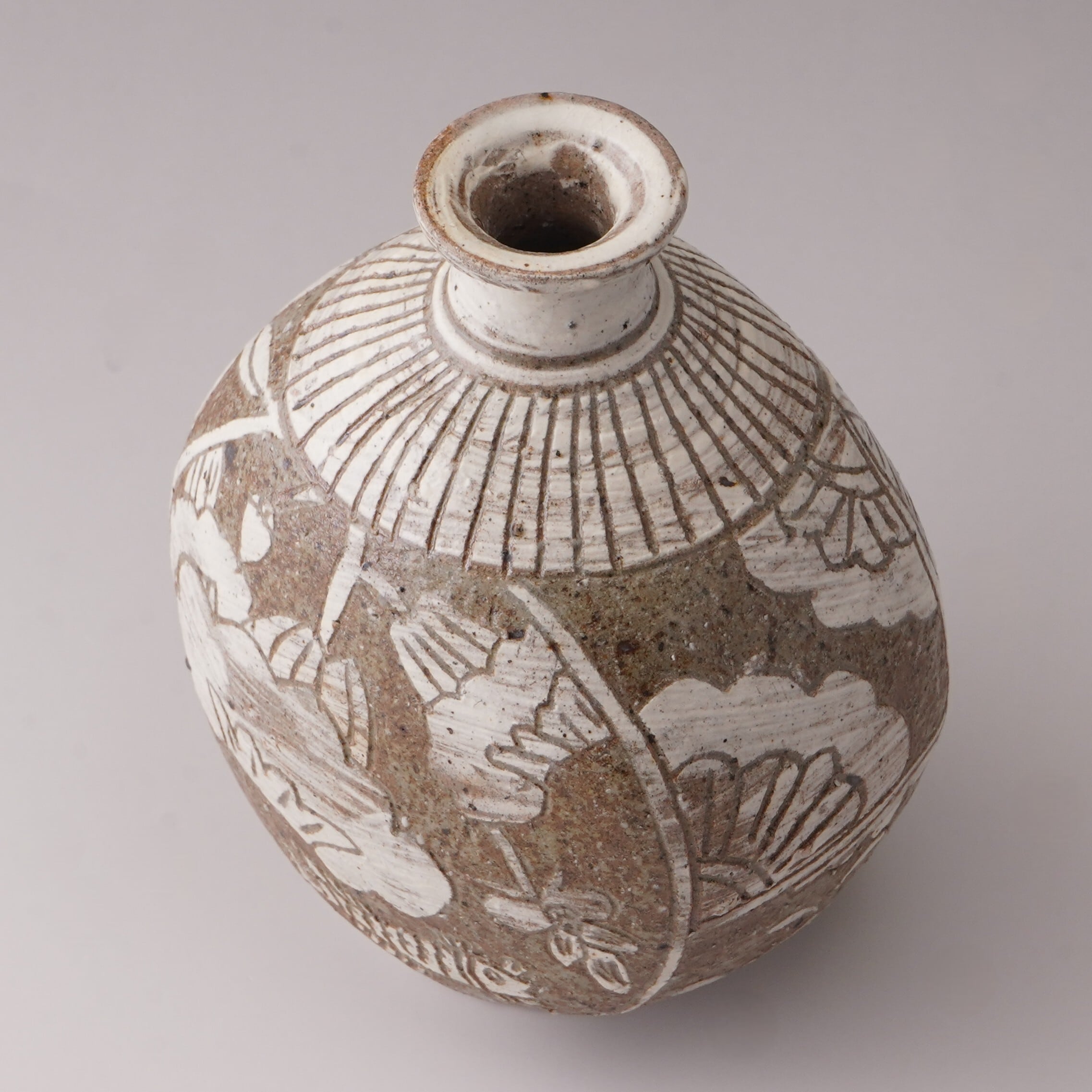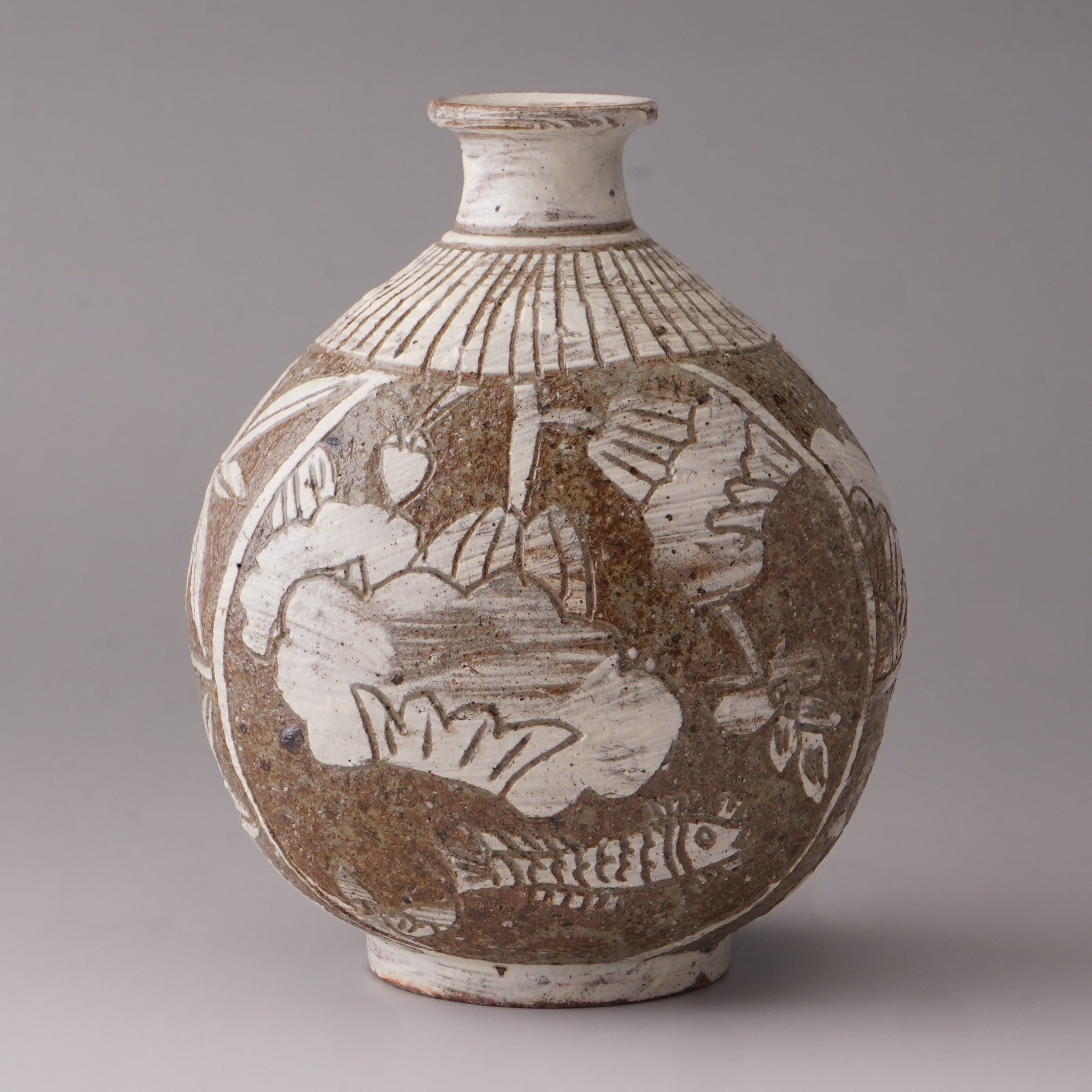 #40【搔落牡丹文扁壷】(木箱後日)『内村慎太郎 作陶展 -唐津・高麗-』より