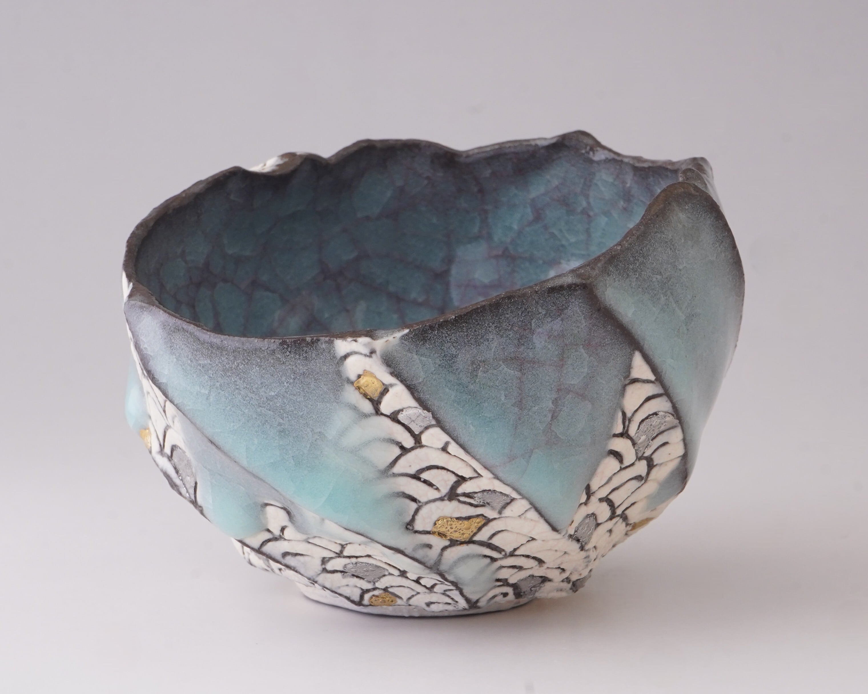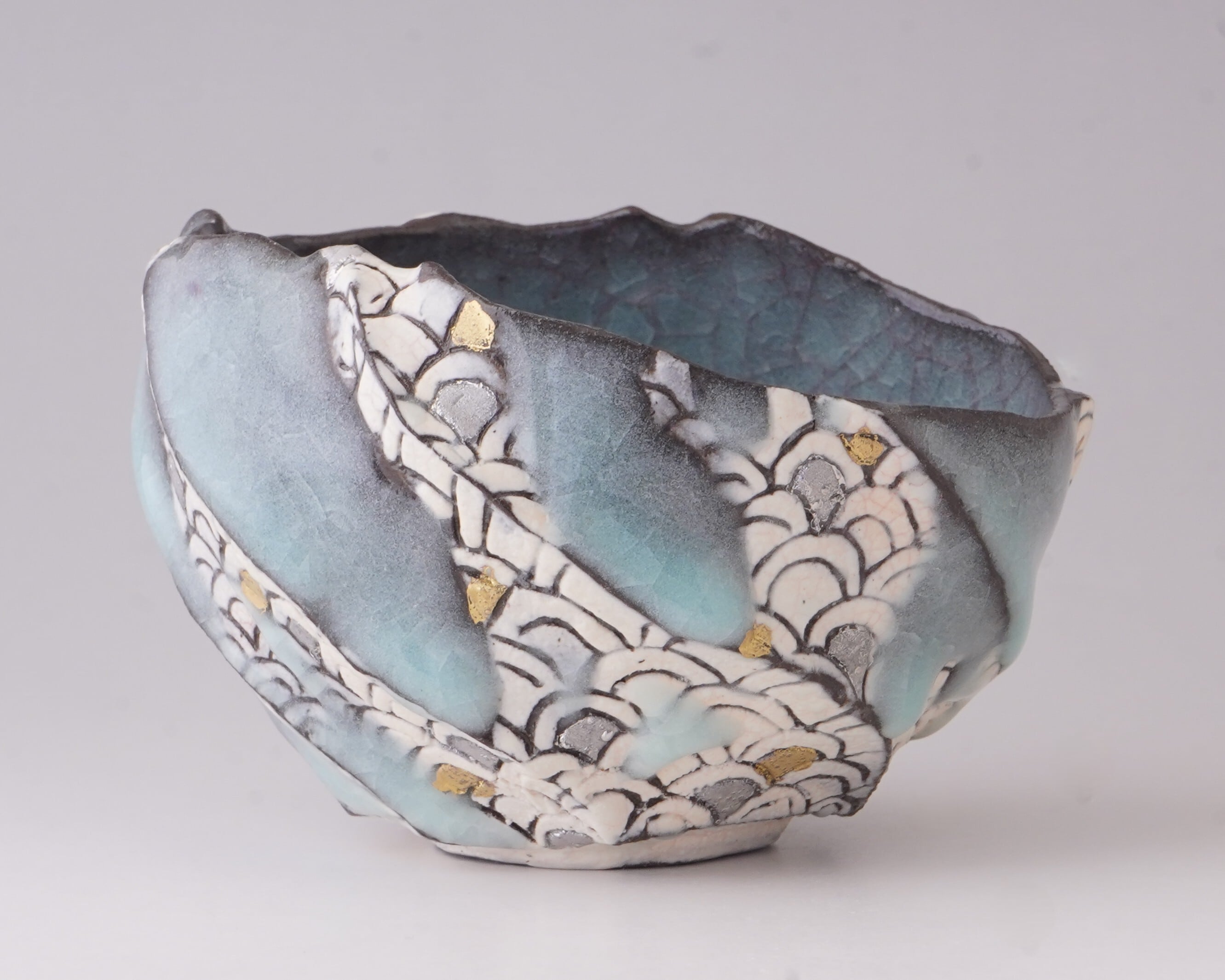 #9【青瓷青海波紋茶盌】(木箱後日)『松田昂 作陶展』より