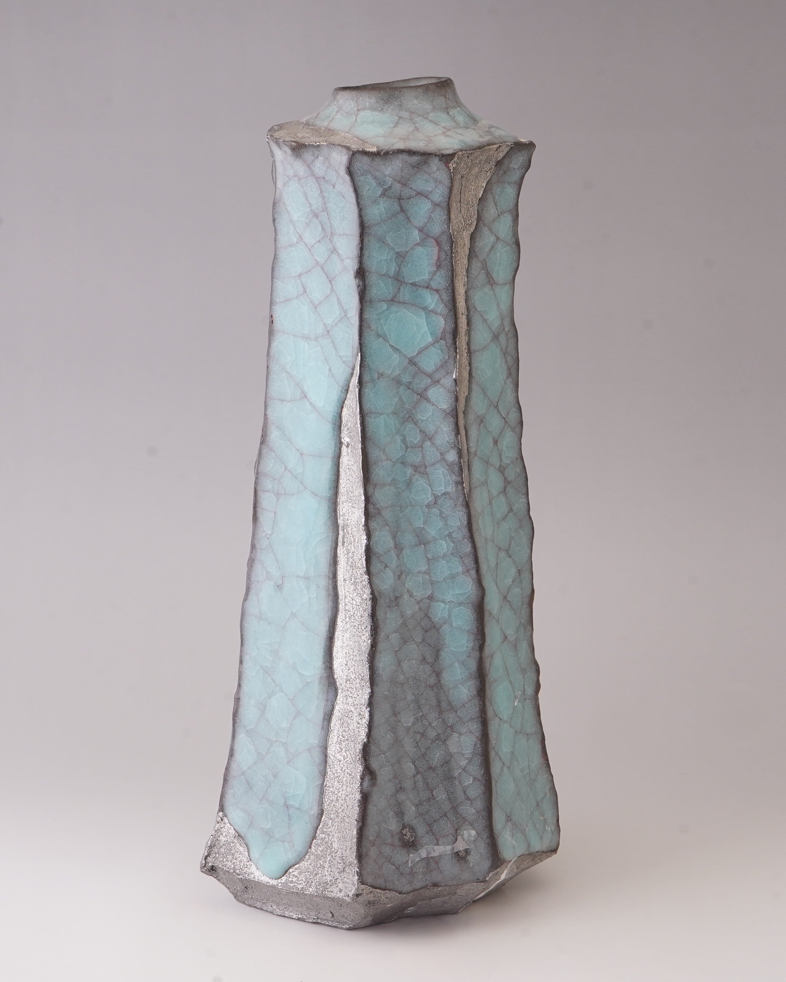 #102【青瓷白金彩花器】『松田昂 作陶展』より